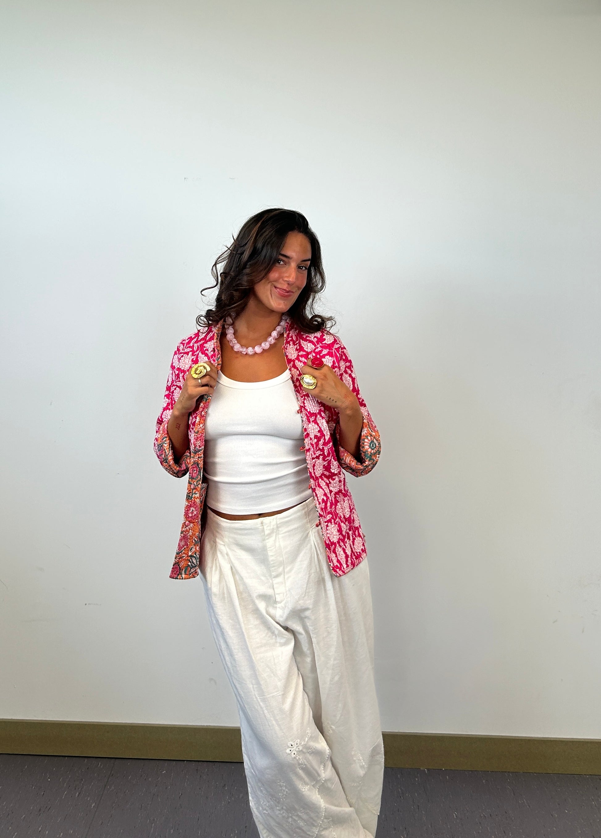 Cambia tu vibra en segundos. Dual Spirit es reversible: un lado con flores enérgicas y otro en rosa vibrante, ambos conectados por la fuerza de tu esencia.